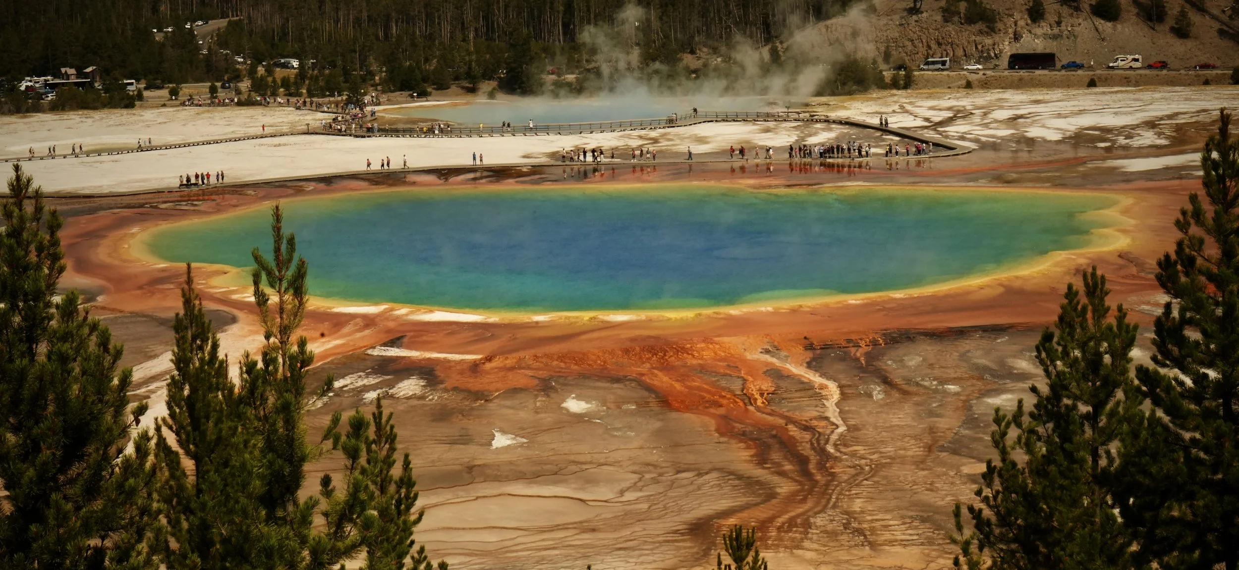 And then, of course, the land itself. The Grand Prismatic Spring was like standing in front of a painting where the artist had gone a little wild with the palette. Fiery oranges faded into golden yellows, which gave way to turquoise blues so deep they felt impossible. Photos don’t prepare you for the scale, or the sheer audacity of it.